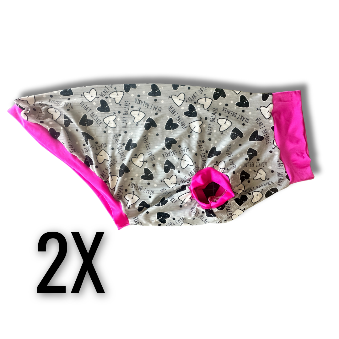 Let your large pup show off their lovable side with our "Heartbreaker" Tee. This attractive top features a playful heart and script pattern with striking pink trim, perfect for the fashionable pooch. The comfortable fabric ensures your dog can look good while feeling great, whether on a walk or just lounging at home.