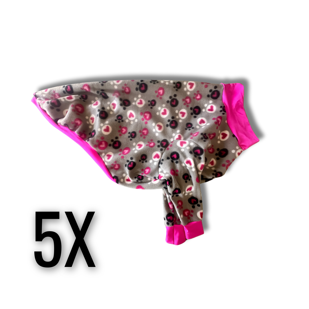 5X Fleece Paw Heart Crewneck with Pink Trim