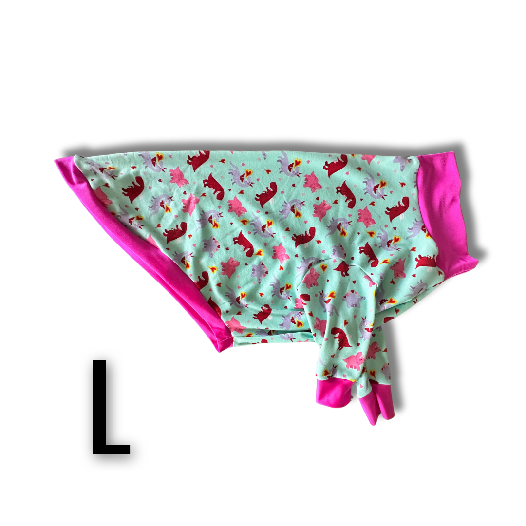 Celebrate love and fun with our "Valen-Dino" Knit Crewneck, perfect for the large pup with a big heart and an even bigger personality. This adorable design features playful dinosaurs in a festive mix of pink and red hues, making it ideal for Valentine's Day or any day your pet wants to stand out in style. The bright pink trim adds a pop of color, while the knit fabric ensures comfort all day long.