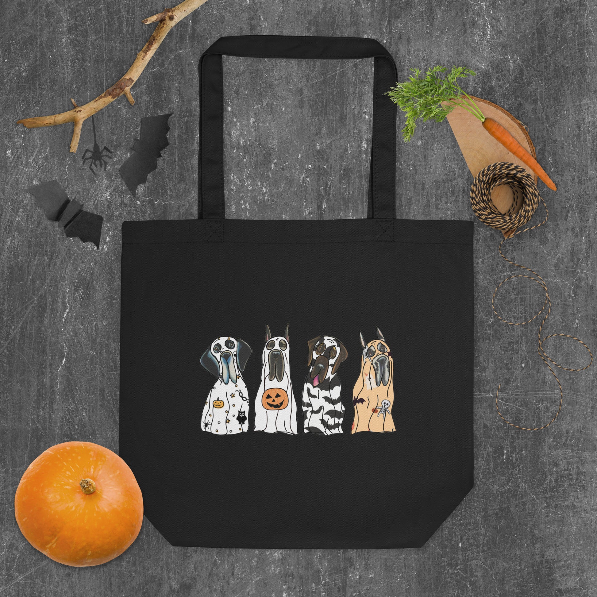Introducing our 'Spooky Dane' Tote Bag – the perfect blend of spooky and adorable to carry your essentials with style! This bewitching tote bag features four lovable Great Danes playfully dressed as ghostly figures, adding a touch of charm and Halloween spirit to your day. Crafted with durable materials, it offers ample space for all your belongings while ensuring long-lasting use. Embrace the supernatural cuteness and grab your 'Spooky Dane Crew' Tote Bag now to carry your belongings with a touch of whimsy and spookiness!